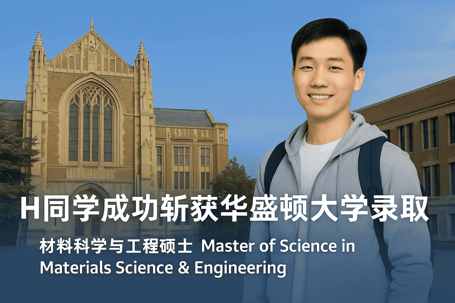 H同学 本科背景: 北京理工大学 材料科学与工程专业GPA: 3.80/4.0 TOEFL: 106 GRE: 325 Offer:华盛顿大