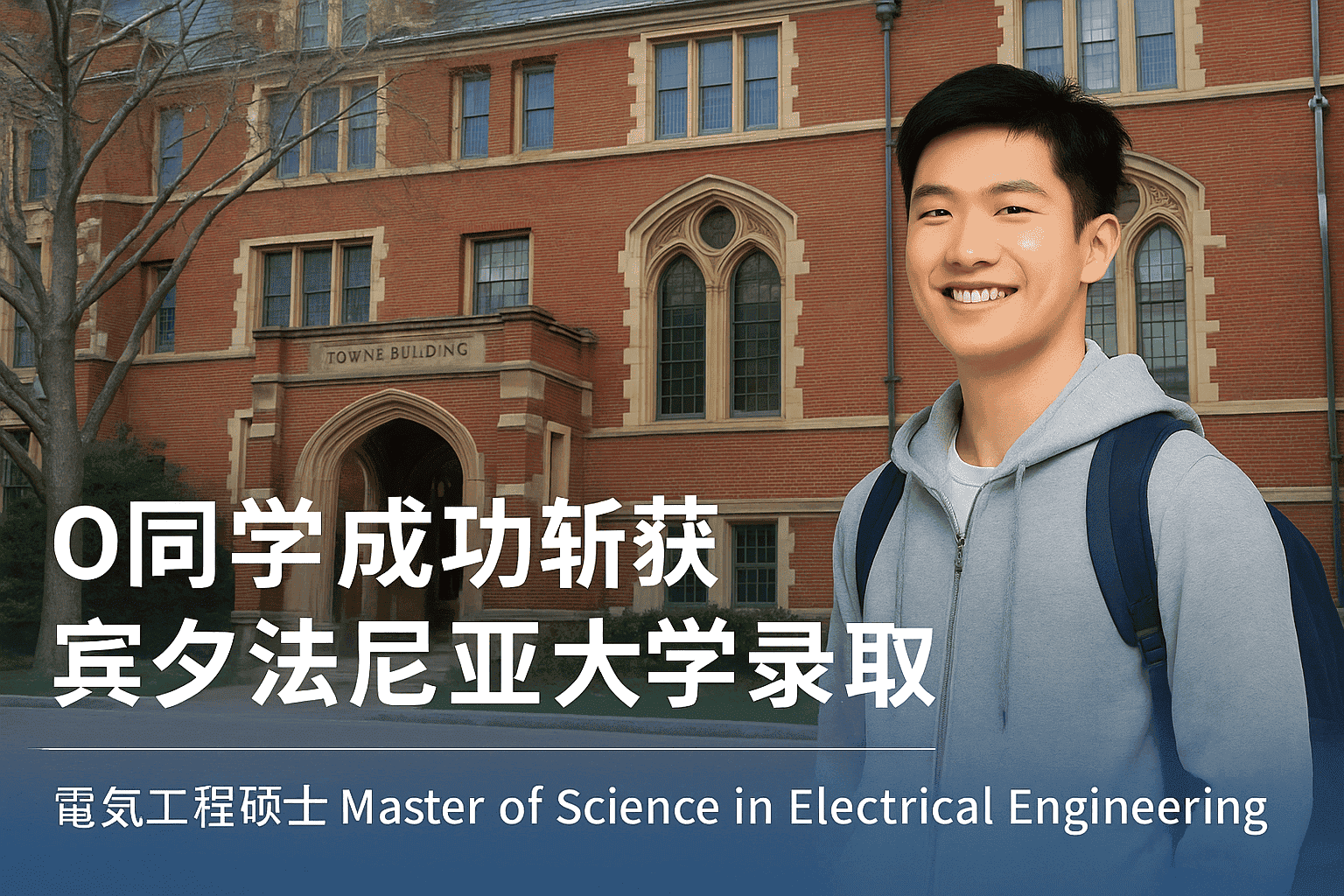 O同学 本科背景: 上海交通大学 电气工程及其自动化专业GPA: 3.78/4.0 TOEFL: 107 GRE: 327 Offer:宾夕